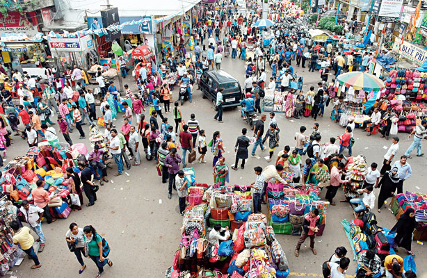 বিকেলে ভিড়ে ঠাসা নিউ মার্কেট এলাকা। — শুভাশিস ভট্টাচার্য ও সুমন বল্লভ