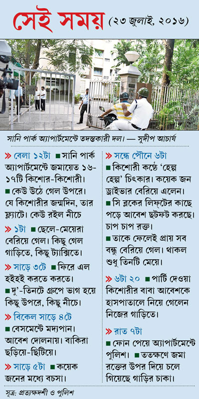 লালবাজারে ডেকে নিয়ে গিয়ে পুলিশের উপর আস্থা রাখতে অনুরোধ করেছেন কমিশনার নিজে। চেয়ে নিয়েছেন কিছুটা সময়ও। পুলিশে আস্থা রেখে সেই সময় দিতে রাজি হলেও সানি পার্কে মৃত কিশোর আবেশের মা রিমঝিম দাশগুপ্তের প্রশ্ন, ‘‘সময় তো অনেকটা ইতিমধ্যেই নষ্ট হয়ে গিয়েছে। তথ্যপ্রমাণগুলো ঘেঁটে দেখা হয়নি এখনও। শুনেছি রক্তও ধুয়ে দেওয়া হয়েছে। তদন্তের কি দেরি হয়ে গেল না?’’