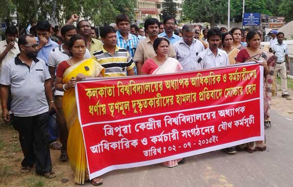 মিছিল করছে ত্রিপুরার শিক্ষক সংগঠন।