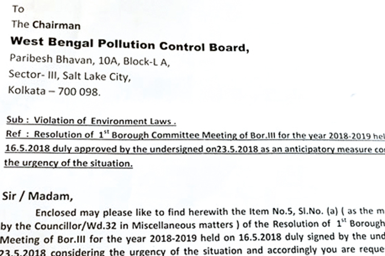 দূষণ নিয়ন্ত্রণ পর্ষদকে লেখা সেই চিঠির অংশ।