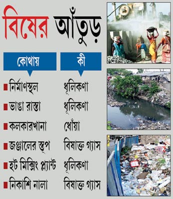 পরিবেশবিদেরা বলছেন, ভাঙাচোরা রাস্তা, নির্মাণস্থলের কংক্রিট আলগা ধুলো থাকে। সেই ধুলোই বাতাসে মিশছে। বাতাসে মিশে থাকা অতি সূক্ষ্ম ধূলিকণা সরাসরি মানুষের শ্বাসযন্ত্রে ঢুকে পড়ছে। বায়ুদূষণের সঙ্গে স্নায়ুরোগের সম্পর্ক নিয়েও কাজ করছেন কলকাতা বিশ্ববিদ্যালয়ের এক গবেষক।