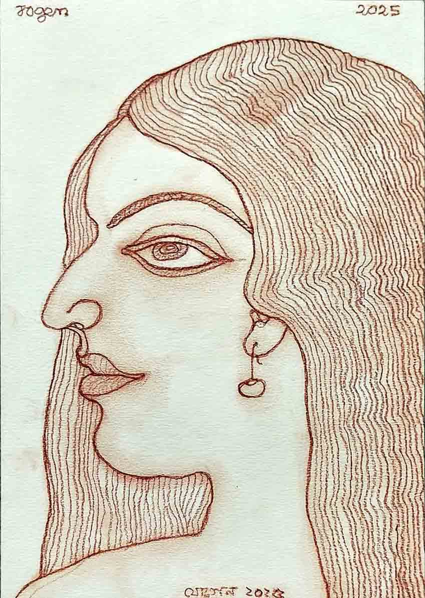 গোলাপের সৌন্দর্য তার রঙে, না আকারে? যদিও ব্যাখ্যা করে তার রং, পাপড়ি, গড়নের কাছে পৌঁছতে পারলাম, তবু নির্দিষ্ট ভাবে বলতে পারলাম কি, সৌন্দর্য ঠিক কোনখানে? এক সাক্ষাৎকারে বলেছিলেন যোগেন চৌধুরী। সৌন্দর্যচেতনা নিয়ে শিল্পীর এই অনুভব ফিরে এল, অষ্টাশিতে পৌঁছনোর পূর্বমুহূর্তে তাঁর নতুন কাজের প্রদর্শনীর শিরোনামে— ‘সুন্দরী’। প্রসিদ্ধ এক চিত্রপটের একদা এমনই নাম দিয়েছিলেন তিনি, বাংলা পটচিত্রের সুডৌল গড়নকে নিজস্ব চিত্রভাষা-সংযোগে নতুন মাত্রা দিয়েছিলেন। এ বার তা ফিরে এল বিকেলবেলার রঙে, শিরোনামে রবীন্দ্রনাথ ছুঁয়ে: ‘মধুর, তোমার শেষ যে না পাই’। ক্রেয়নে, সম্প্রতি আঁকা কুড়িটি ছবির প্রদর্শনী চলছে ৭ ফেব্রুয়ারি থেকে, দেবভাষা বই ও শিল্পের আবাসে। ২৫ ফেব্রুয়ারি পর্যন্ত, ছুটির দিন বাদে রোজ ২টো-৮টা।