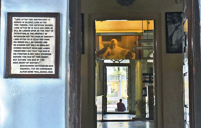 অরবিন্দের উদ্দেশে দেশবন্ধুর ফলক-সহ ঘরটি।