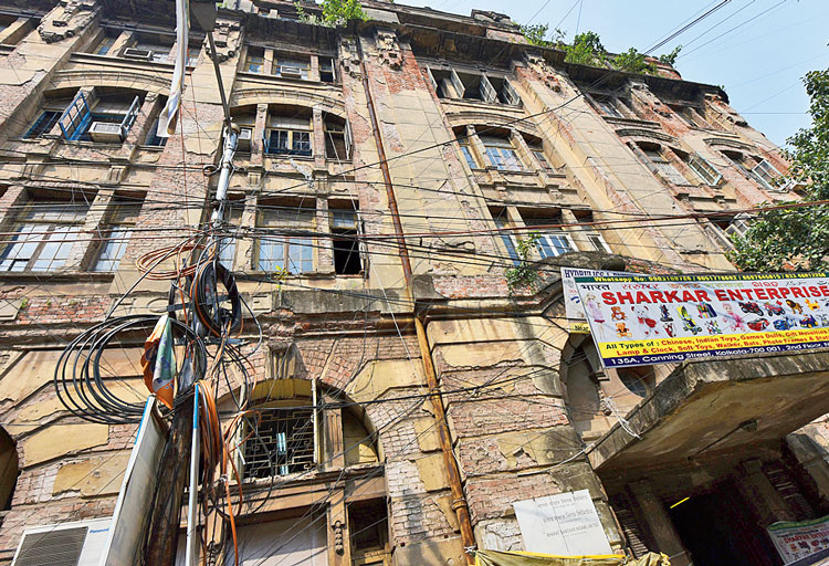 ১৩৫, ক্যানিং স্ট্রিট বহুতলটির ভগ্নদশা। মঙ্গলবার, বড়বাজারে। নিজস্ব চিত্র