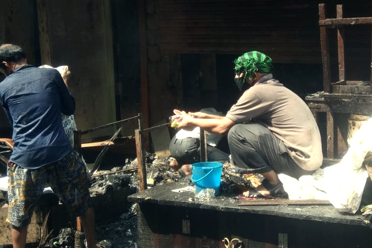 আগুন মাথায় নিয়েই জিনিস বাঁচানোর মরিয়া চেষ্টা ব্যবসায়ীদের। —নিজস্ব চিত্র।