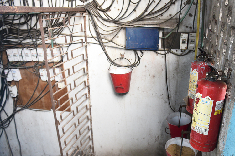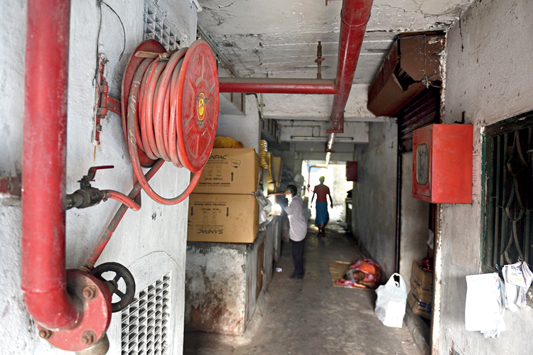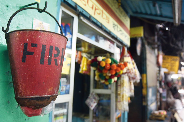 ভয়ঙ্কর অবস্থা দক্ষিণ কলকাতার শতাব্দী প্রাচীন যদুবাবুর বাজারের। দিনভর ঘুরেও সেখানে কোনও অগ্নি নির্বাপকের দেখা মিলল না। তারের জটে দমবন্ধ বাজারে অগ্নি-নির্বাপণ ব্যবস্থা বলতে চৌবাচ্চায় মজুত করা জল। ঘটনাচক্রে এ দিনই যদুবাবুর বাজার সংলগ্ন মিষ্টির দোকানের কারখানায় আগুন লেগে আতঙ্ক ছড়ায়। যদুবাবু বাজার ব্যবসায়ী সমিতির সম্পাদক ভানু বিশ্বাস বললেন, ‘‘যতটা সম্ভব বাজার ভাল রাখার চেষ্টা করি আমরা। অগ্নি-নির্বাপক ছিল, কয়েকটা খারাপ হয়ে গিয়েছে। তা ছাড়া সেগুলির ব্যবহার কেউ না শেখালে শিখব কী করে?’’