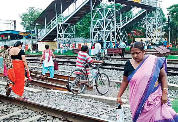 বাধ্য হয়ে রেললাইন টপকে পারাপার।