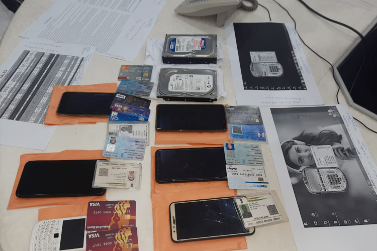 ধৃতদের কাছ থেকে উদ্ধার হওয়া মোবাইল ফোন, হার্ড ডিস্ক। নিজস্ব চিত্র।