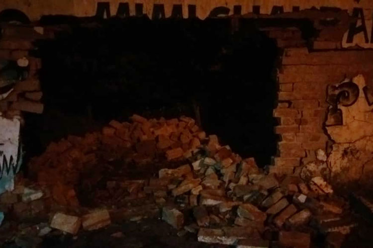 গাড়ির ধাক্কায় ভেঙে গিয়েছে পাঁচিল। নিজস্ব চিত্র।