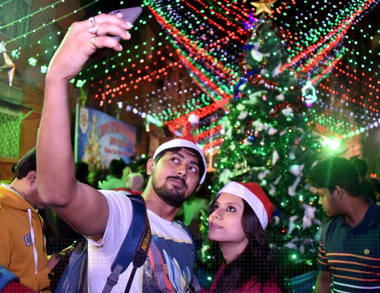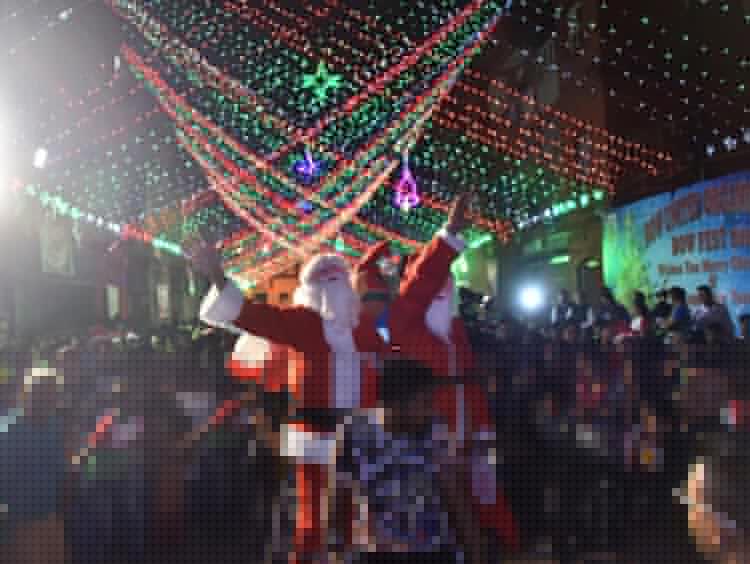 আলোর মালায় সেজে ওঠা রাস্তার একপাশে তৈরি হয়েছে স্টেজ। মাঝে একটা বড়সড় ক্রিসমাস ট্রি। বাড়ির সামনের উঠোনে বসে গল্প আড্ডা আর খাওয়াদাওয়ার মাঝে চলছে কুশল বিনিময়। ক্রিসমাস টুপি মাথায় দিয়ে চলছে জোরদার সেলফি সেশন। এখানে সান্তা স্লেজ গাড়িতে আসেন না। আসেন রিকশোতে চড়ে। চকোলেট, খেলনা ছুঁড়তে থাকেন রাস্তার দুই পাশে সার বেঁধে দাঁড়িয়ে থাকা বাচ্চাদের দিকে।