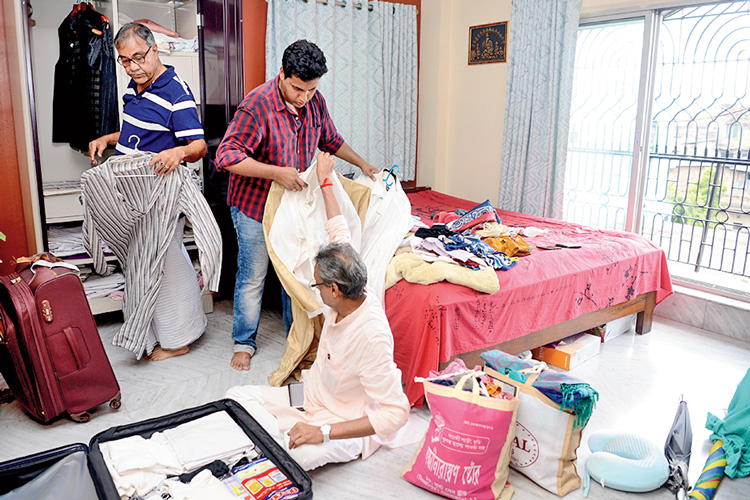 বি বি গাঙ্গুলি স্ট্রিটের ফ্ল্যাট খালি করছেন মন্ত্রী তাপস রায় ও তাঁর পরিবার। ছবি: স্বাতী চক্রবর্তী