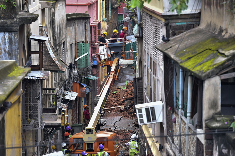 মেট্রো সুড়ঙ্গ বিপর্যয়ে বৌবাজারের বহু মানুষ ঘরছাড়া। —নিজস্ব চিত্র।