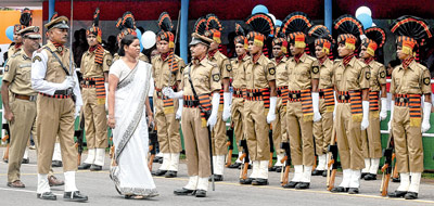 স্বাধীনতা দিবসের কুচকাওয়াজের মহড়া। বাহিনীর অভিবাদন নিচ্ছেন ‘মুখ্যমন্ত্রী’,
