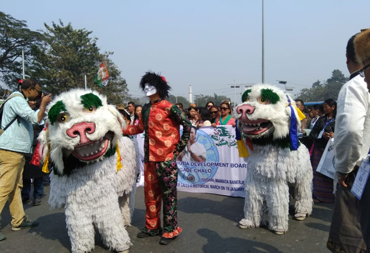 • সকাল এগারোটা থেকেই মঞ্চে আসতে শুরু করেন একে একে রাজনৈতিক নেতারা। বারোটার বেশ কিছুক্ষণ আগেই মঞ্চে হাজির হন তৃণমূল নেত্রী।