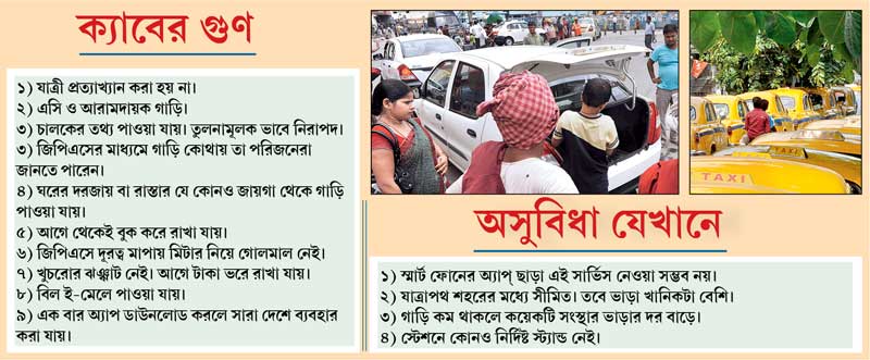 এক যাত্রী মৌসুমী সাহার কথায়, ‘‘ঘণ্টার পর ঘণ্টা দাঁড়িয়ে গাড়ি হয়তো পাব, সে তো ইচ্ছেমতো দর হাঁকাবে। তার চেয়ে আমি ফোন করে ‘ক্যাব’ ডেকে নিলাম। একটু বেশি ভাড়া দিয়ে আরামে বাড়ি পৌঁছে গেলাম। শুধু শুধু ট্যাক্সি নিয়ে মাথা ঘামাব কেন!’’