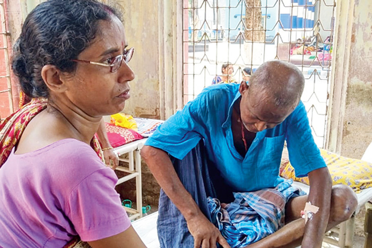 ঘটনার পরে আহত সন্তোষ দাস। মঙ্গলবার। নিজস্ব চিত্র