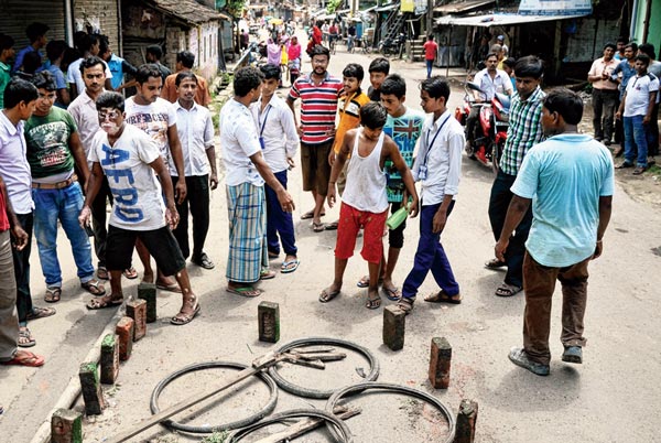 এলাকায় স্থানীয়দের ভিড় । সোমবার, রাজারহাটে। নিজস্ব চিত্র