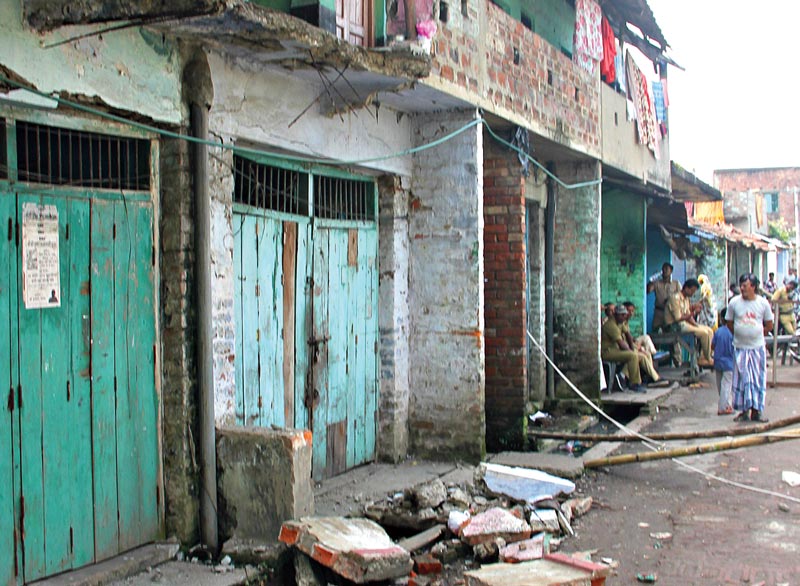 স্থানীয় বাসিন্দাদের অভিযোগ, বজবজে একাধিক জীর্ণ বাড়ি থাকলেও বাড়ির মালিক বিল্ডিং সংস্কার করেন না। শুক্রবার রাতে ৪০, গোলাম রসুল রোডের যে বাড়িটি ভেঙে পড়েছে, সেটি বজবজ পুরসভার তিন নম্বর ওয়ার্ডের অন্তর্গত। তিন নম্বর ওয়ার্ড লাগোয়া সতেরো নম্বর ওয়ার্ড। এই এলাকায় কয়েকশো বিপজ্জনক বাড়িতে বসবাস করে চলেছেন ভাড়াটেরা। স্থানীয় এক বাসিন্দার অভিযোগ, ‘‘রেললাইনের দু’পারে সার দিয়ে বিপজ্জনক বাড়িতে প্রাণ হাতে করে বসবাস করেন অনেকে। বিপজ্জনক বাড়ি চিহ্নিত করে পুরসভাও কোনও নোটিস পাঠায় না। জীর্ণ বাড়ি সংস্কারে পুরসভার বিন্দুমাত্র ভূমিকাই নেই।’’ বজবজ পুরসভার ভাইস চেয়ারম্যান গৌতম দাশগুপ্ত এ প্রসঙ্গে বলেন, ‘‘এলাকা ঘুরে ঘুরে বিপজ্জনক বাড়ি চিহ্নিত করার মতো পরিকাঠামো আমাদের নেই। কোনও অভিযোগ পেলে আমরা ব্যবস্থা নিই মাত্র।’’ স্থানীয় কাউন্সিলর শঙ্কর গোপাল প্রামাণিকের দাবি, ‘‘জীর্ণ বাড়ি সংস্কারের কথা বলতে গেলে বাড়িওয়ালা-ভাড়াটে একে অন্যের উপরে দায় চাপান। আদালতের হুমকি দেন। আমরা অসহায়।’’