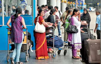 দিনের দুর্গতির চিত্র। বিমানবন্দরে ট্যাক্সি না-পেয়ে যাত্রীদের হয়রানি। বৃহস্পতিবার।