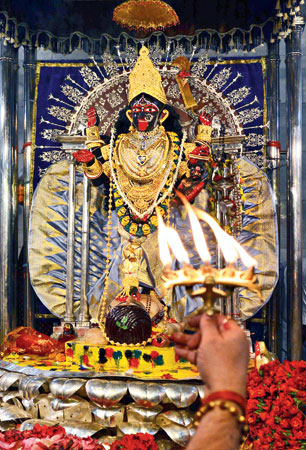 এই সব মণ্ডপের পাশাপাশি কালীঘাট বা দক্ষিণেশ্বর মন্দিরে সকাল-বিকেল ভিড়টাও তো কলকাতার চিরন্তন থিম। এ বার একই সঙ্গে দিওয়ালি ও কালীপুজোয় দিনটার মহিমা যেন দ্বিগুণ।