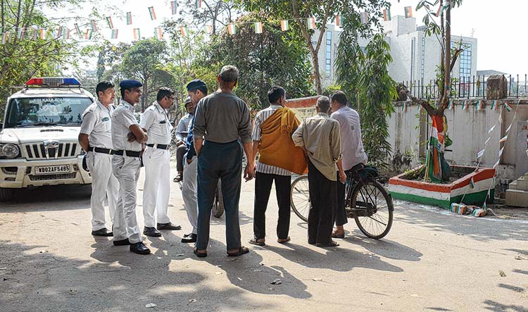 এলাকায় পুলিশি পাহারা। শনিবার, কসবার প্রান্তিক পল্লিতে।