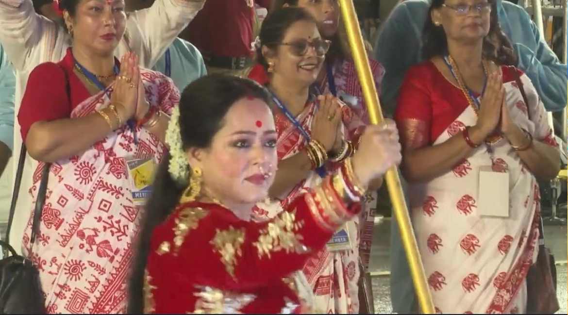 দক্ষিণ কলকাতা সর্বজনীনের পুজোর কার্লিভালে নাচলেন অভিনেত্রী অপরাজিতা আঢ্য।