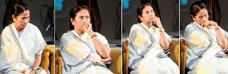 চিন্তামগ্ন। আইসিসিআর-এ সুচিত্রা মিত্রের স্মরণসভায় মুখ্যমন্ত্রী।