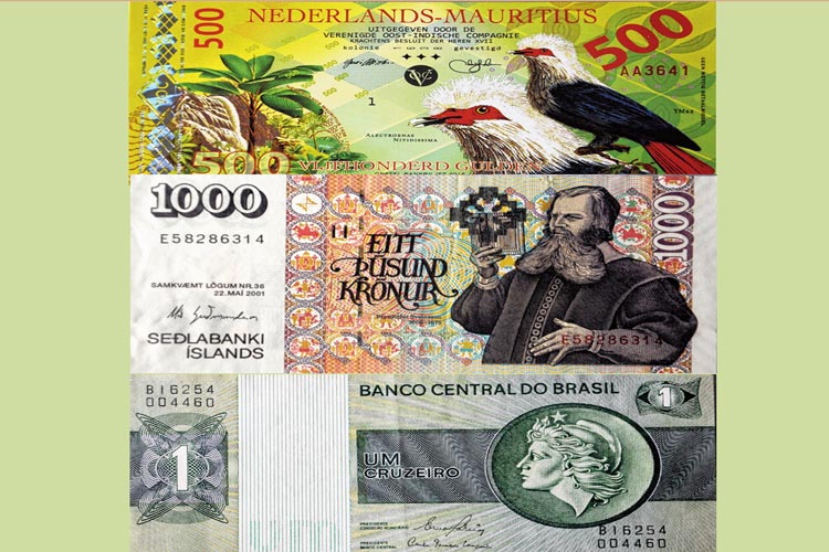 মরিশাস, ব্রাজিল এবং আইসল্যান্ডের মুদ্রা।