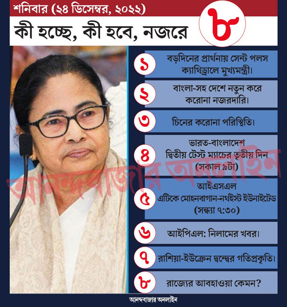 রবিবার বড়দিন। তার আগে আজ, শনিবার সেন্ট পলস ক্যাথিড্রালে যাবেন মুখ্যমন্ত্রী মমতা বন্দ্যোপাধ্যায়। রাতে সেখানে প্রার্থনায় অংশ নেওয়ার কথা তাঁর।