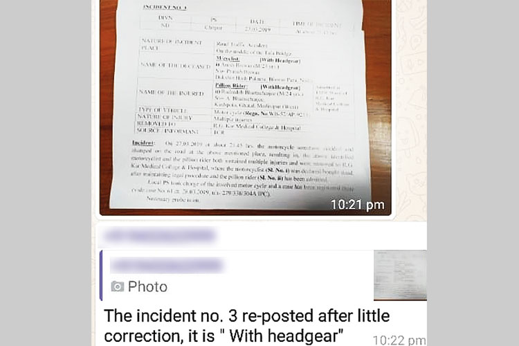 ওই দিন লালবাজার জানায়, বুধবার রাতে টালা সেতুর উপরে হেলমেটহীন দুই মোটরবাইক আরোহীর দুর্ঘটনা ঘটে। তাতে অনীশ বিশ্বাস নামে এক আরোহীর মৃত্যু হয়। অথচ, ঘটনাটি যে ট্র্যাফিক গার্ড এলাকায় ঘটেছে সেখানে ফোন করলে এক আধিকারক বলেন, ‘‘মাথায় দামী হেলমেট ছিল।’’