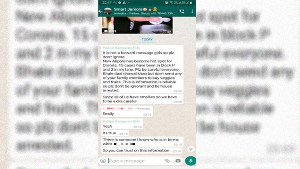 পুলিশ জানিয়েছে, ওই মহিলার নাম পল্লবী শিবানী। স্মার্ট জুনিয়রস নামে এক হোয়াটসঅ্যাপ গ্রুপের সদস্য তিনি। নিউ আলিপুরে ১৫ জন করোনা আক্রান্তের পজিটিভ কেস রাজ্য সরকার পুরোপুরি ধামাচাপা দিয়ে রেখেছেন বলে ওই গ্রুপে পোস্ট করেছিলেন তিনি।