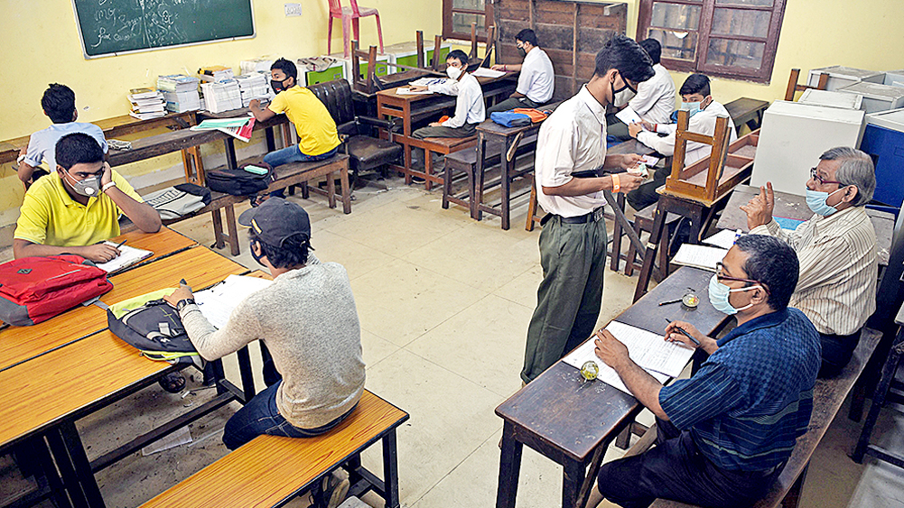 গত কয়েক দিন ধরেই কলকাতার বেশ কিছু স্কুলে রেজিস্ট্রেশন-পর্ব চলছে। যেমন, সংস্কৃত কলেজিয়েট স্কুল। সেখানে গিয়ে দেখা গেল, একটি ক্লাসঘরেই পড়ুয়ারা সকলে বসে রেজিস্ট্রেশনের ফর্ম পূরণ করছে। প্রধান শিক্ষক দেবব্রত মুখোপাধ্যায় বললেন, ‘‘এক-একটি বেঞ্চে দু’জন করে পড়ুয়া বসে ফর্ম পূরণ করছে। ওরা স্কুলে আসার আগে ক্লাসরুম খুব ভাল ভাবে জীবাণুমুক্ত করা হয়েছে।”