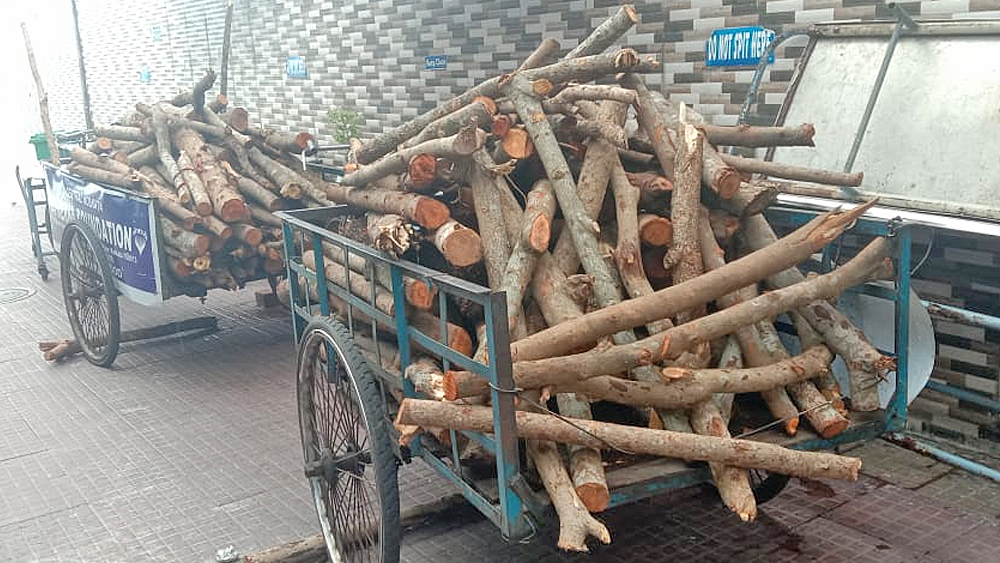 চিতার কাঠ। গাড়িগুলো দাঁড়িয়ে আছে লকডাউনের পর থেকেই।