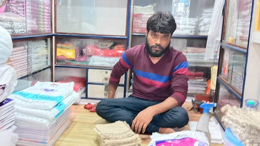 খরিদ্দার নেই, নিজের দোকানে এখন বেশির ভাগ সময় এমনই বসে থাকেন ছোটু রায়।