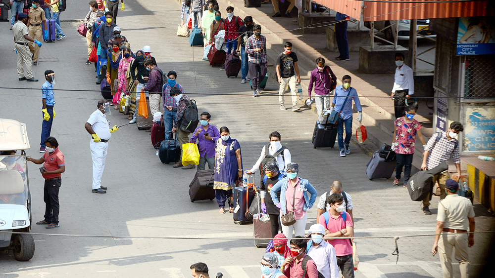 তামিলনাড়ুর ভেলোর থেকে বিশেষ ট্রেনের হাওড়ায় পৌঁছনোর কথা ছিল দুপুর দেড়টার মধ্যে। মঙ্গলবার যখন হাওড়ার নিউ কমপ্লেক্সের ২৩ নম্বর প্ল্যাটফর্মে সেই ট্রেন এসে পৌঁছল, তখন বিকেল ৫টা। অন্য দিকে, পুরনো কমপ্লেক্সের ৯ নম্বর প্ল্যাটফর্ম থেকে ঠিক তার দশ মিনিট পরেই ছেড়ে গেল দিল্লি-হাওড়া বিশেষ যাত্রিবাহী ট্রেন। প্রায় দু’মাস পরে বন্দিদশা কাটতে চলায় তখন দু’জায়গাতেই হাসি-কান্নার ছবি।