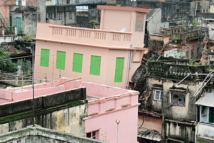 ভেঙে পড়ার আগের মুহূর্তে এ ভাবেই হেলে পড়েছিল সেটি। ছবি: স্বাতী চক্রবর্তী।