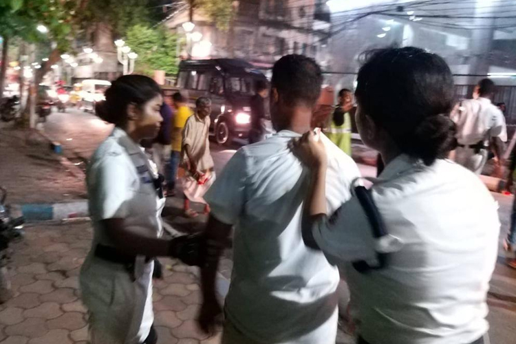 অভব্যতার অভিযোগে কলকাতা পুলিশের মহিলা পুলিশের হাতে গ্রেফতার যুবক। ছবি: কলকাতা পুলিশের সৌজন্যে