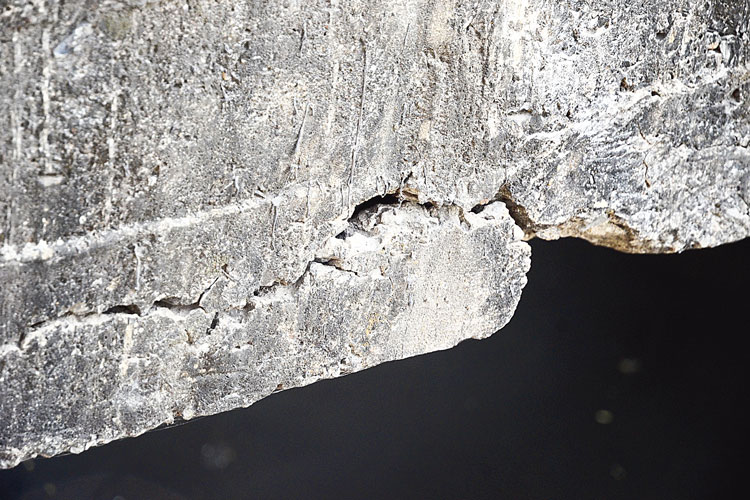 বিপজ্জনক: ফাটল ধরা সেই অংশ। ছবি: শৌভিক দে