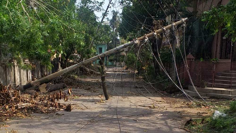 আমপানের দাপটে উল্টে গিয়েছে বিদ্যুতের খুঁটি।