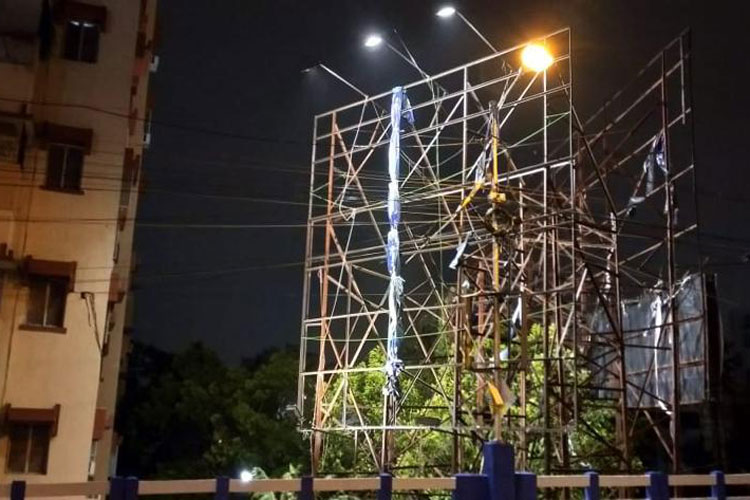 খুলে নেওয়া হয়ছে শহরের সব ব্যানার ও হার্ডিং। —নিজস্ব চিত্র।