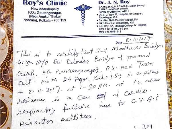 ডেথ সার্টিফিকেটে অবশ্য জ্বরের কোনও উল্লেখ নেই।