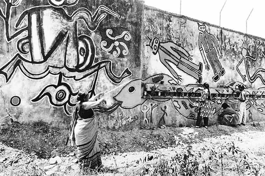 দশ বছর হয়ে গেল শিল্পী শানু লাহিড়ীর প্রয়াণের। তারও বড় কথা, বহু দিন হল এ শহরে তাঁর চিত্রকৃতি নিয়ে প্রদর্শনী হয়নি কোনও, শহরের শিল্প-পরিসরগুলিতে আলোচনা হয়নি তাঁকে নিয়ে। গত ১৬ জুন সে কাজটিই করল পার্ক স্ট্রিটের গ্যালারি আর্ট ফ্রিকোয়েন্সিজ়— ‘শানু লাহিড়ী: ট্রানজ়িশনস অ্যান্ড ইন্টারসেকশনস’ প্রদর্শনীর মাধ্যমে। আরও গুরুত্বপূর্ণ যা: শিল্প-ইতিহাসবিদ তপতী গুহঠাকুরতার অন্তরঙ্গ কথনে উঠে এল শিল্পীর জীবনকৃতি, শানু লাহিড়ী ও তাঁর সমসাময়িক নারী চিত্রশিল্পীদের কাজের পরিপ্রেক্ষিত, বিদেশে শিল্পচর্চা, দেশে ফিরে নিজেদের কাজে নতুন দিক-আঙ্গিকের এষণা। আশির দশকে এ শহরের দেওয়াল সেজে উঠেছিল শিল্পীর নেতৃত্বে অনবদ্য ম্যুরালে (নীচের ছবি), ই এম বাইপাসে পরমা আইল্যান্ডে ছিল তাঁর স্থাপত্য। সেই সবই আজ অতীত। প্রদর্শনী মনে করিয়ে দেয়, যেন ভুলে না যাই।