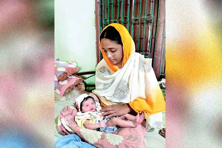 মায়ের কোলে সদ্যোজাত। বৃহস্পতিবার, রাজারহাটের বাড়িতে। নিজস্ব চিত্র