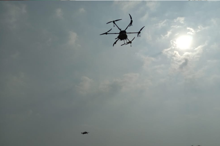 ড্রোন উড়িয়ে মশার ‘বিনাশ’। নিজস্ব চিত্র