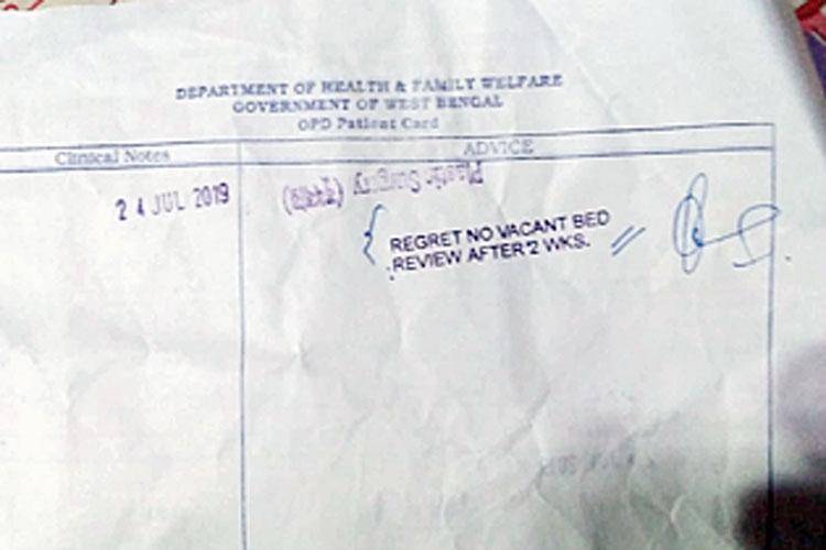 আর জি করে শয্যা ফাঁকা না থাকার কথা লিখে দেওয়া হয়েছে।