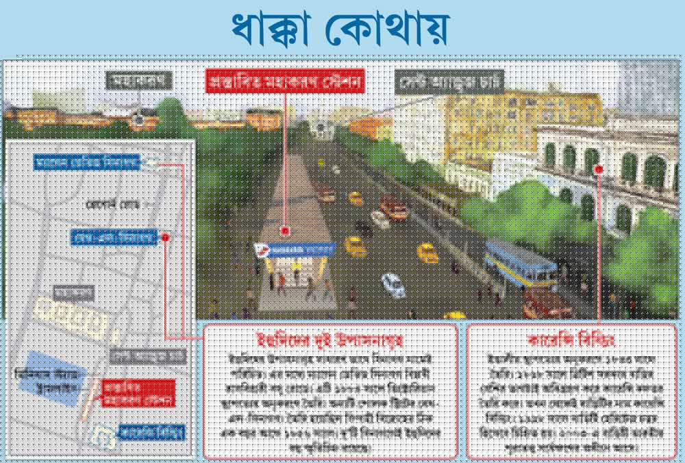 মেট্রো রেলের কর্তারা জানাচ্ছেন, মহাকরণ থেকে হাওড়ার দিকে যে পথে পাতাল রেলের যাওয়ার কথা, সেখানেই রয়েছে ভারতীয় পুরাতত্ত্ব সর্বেক্ষণ (এএসআই)-এর সংরক্ষিত শতাব্দী-প্রাচীন তিন সৌধ— কারেন্সি বিল্ডিং এবং ইহুদিদের দু’টি উপাসনাগৃহ (ম্যাগেন ডেভিড সিনাগগ এবং বেথ-এল-সিনাগগ)। ইস্ট-ওয়েস্ট মেট্রো-পথের ওই তিন সৌধ এএসআই-এর সংরক্ষণের আওতায় রয়েছে। ফলে তার ১০০ থেকে ২০০ মিটারের মধ্যে কোনও নির্মাণ করতে হলে ‘ন্যাশনাল মনুমেন্ট অথরিটি অব ইন্ডিয়া’ থেকে অনুমতি নিতে হবে। এই তিন সৌধের একশো মিটারের মধ্যে খননকাজ চালানোর জন্য ২০১৫ সালে এএসআই-এর কাছে অনুমতি চেয়েছিলেন মেট্রো রেল কর্তৃপক্ষ। তাঁদের হতাশ করে এএসআই মাস চারেক আগে জানিয়েছে, ওই অনুমতি দেওয়া যাবে না। কারণ, ‘এনশিয়েন্ট মনুমেন্ট অ্যান্ড আর্কিয়োলজিক্যাল সাইট অ্যান্ড রিমেন্স অ্যাক্ট ১৯৫৮’ শেষ বার সংশোধিত হয়েছে ২০১০ সালে। তাতে বলা হয়েছে, দেশ জুড়ে এএসআই-এর দ্বারা ‘মনুমেন্ট’ হিসেবে সংরক্ষিত সৌধগুলির একশো মিটারের মধ্যে কোনও খনন বা নির্মাণ করা যাবে না। এমনকী, এ ব্যাপারে কেউ অনুমতিও দিতে পারবে না।