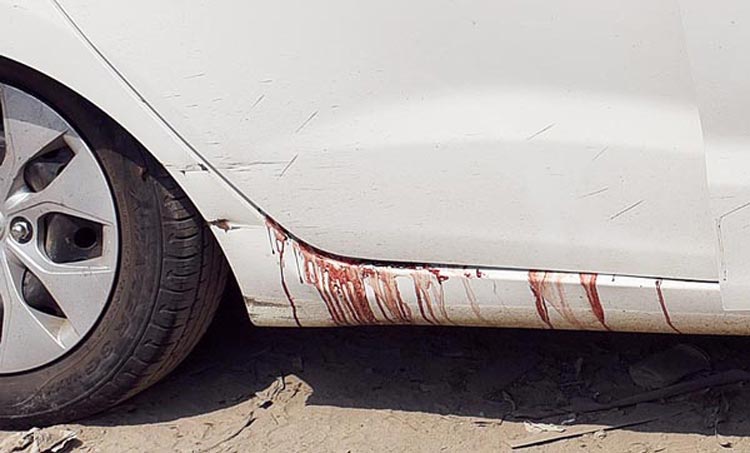 গাড়িটি থেকে তখনও গড়িয়ে পড়ছে রক্ত। রবিবার। ছবি: বিশ্বনাথ বণিক