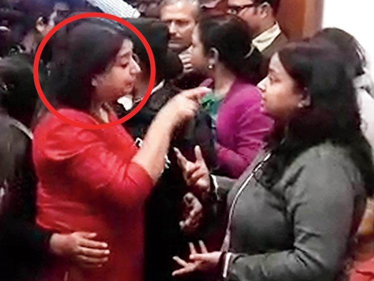 তার পরিজনেদের সঙ্গে বচসায় জড়ালেন জয়ন্তীদেবী। বুধবার, মুকুন্দপুরের আমরি হাসপাতালে। ছবি: স্বাতী চক্রবর্তী ও নিজস্ব চিত্র