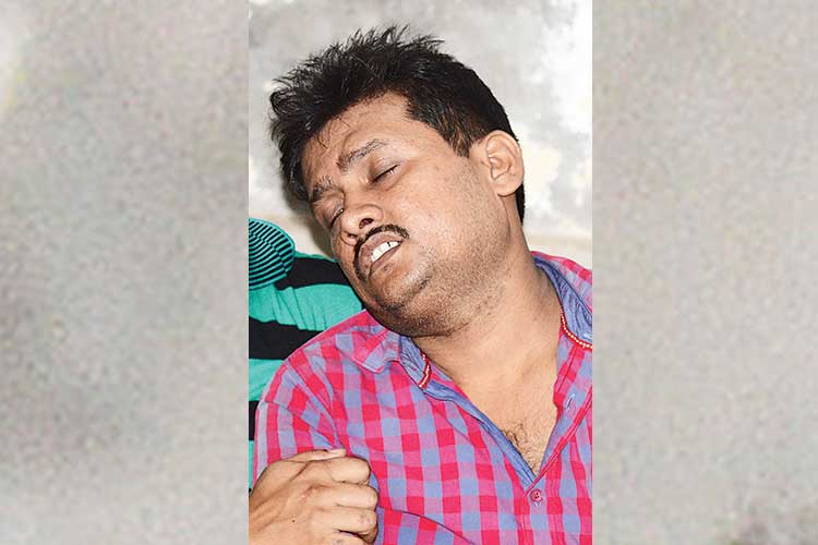 শোকার্ত: নিহত শিশুর বাবা জন্মেজয় ঘোষ। ছবি: সুদীপ ঘোষ।