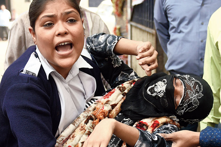 এ দিকে, শনিবার দুপুরে আদালতে নিয়ে আসার সময়ে আরও এক দফা নাকানি-চোবানি খেতে হয় পুলিশ অফিসারদের। আদালতের গেটের বাইরে গাড়ি থেকে অভিযুক্তদের নামিয়ে এজলাসে নিয়ে যাওয়ার সময়ে আঠেরো বছরের তরুণী আফরারা খাতুন মাটিতে লুটিয়ে পড়েন। তাঁকে সামলাতে বাকিরা ছুটে এলে আরও এক মহিলা পড়ে যান। যদিও তিনি অভিযুক্ত নন বলে জানায় পুলিশ। আদালতে আসা পরিজনেদের ডেকে শেষে অভিযুক্তদের তুলে নিয়ে যেতে হয়। পরে অবশ্য জামিন পেয়ে যান আফরারা।